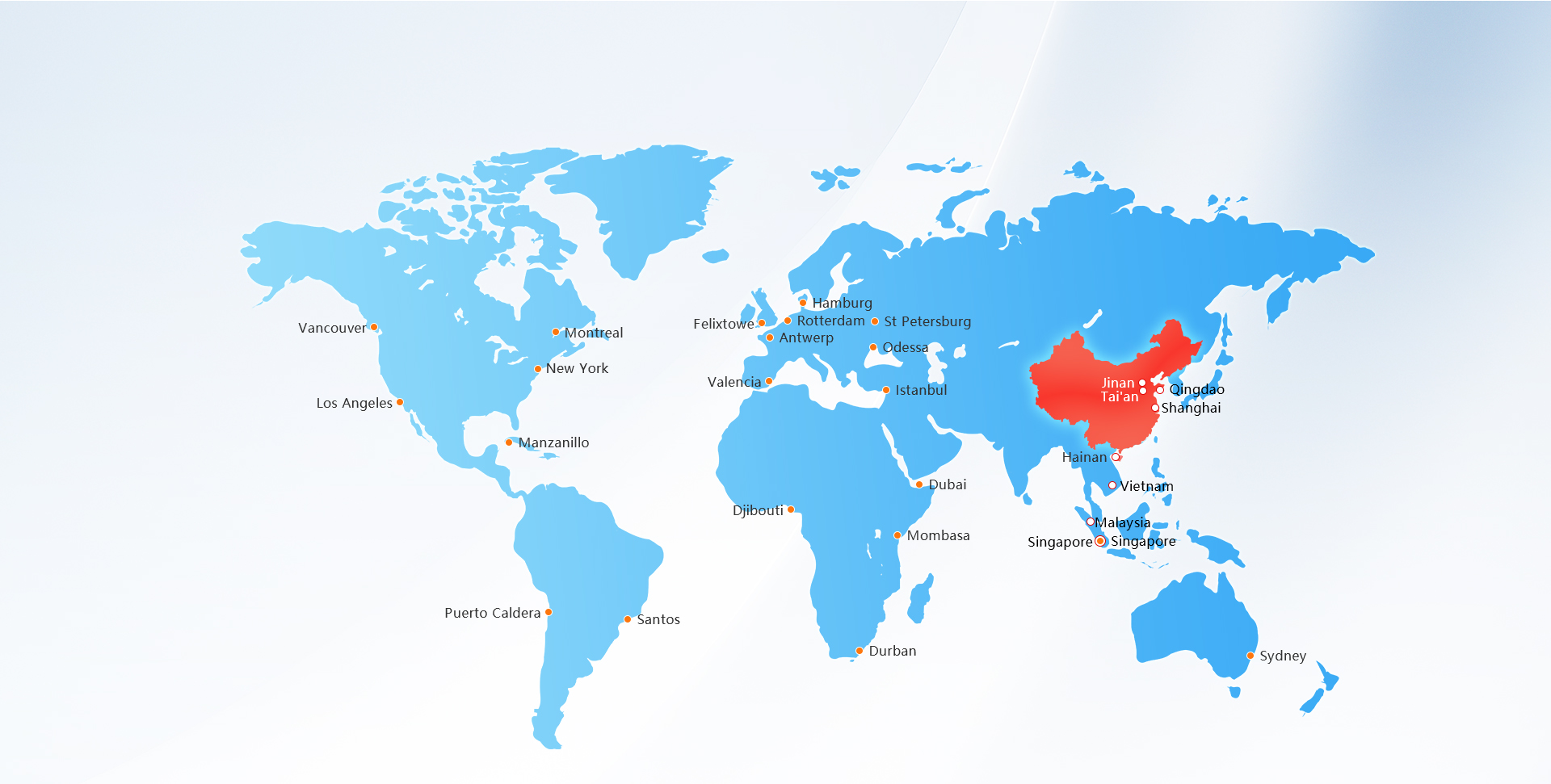 We are a Class-A international freight forwarder approved by the Ministry of Commerce of the People’s Republic of China. Boasting a robust shipping agency network, professional staff, and extensive market connections, we ensure that your cargos are delivered to destinations worldwide in a safe, punctual and convenient way. In addition, we provide a full range of extended domestic and overseas services including EXW, DDP/DDU and door-to-door delivery, and also offer all kinds of trade support services covering import and export, cargo return, bonded warehousing and customs transit, as well as insurance agency services.
